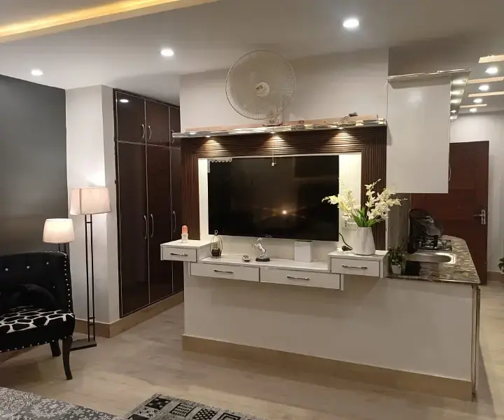 A furnished studio apartment is available for rent in Buch Villas, Multan. The apartment features 1 bedroom, 1 washroom, and 1 kitchen, making it an ideal option for residential living in a comfortable and convenient setting.