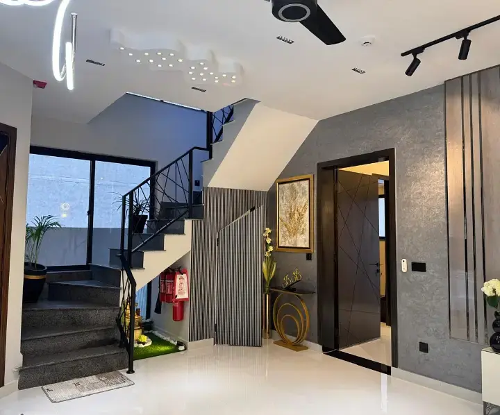 A 5 Marla brand new full house is available for rent in DHA Phase 9 Town, Lahore. This modern home features 3 spacious bedrooms with attached baths, a total of 4 bathrooms, a stylish kitchen, TV lounge, and high-quality fixtures and fittings. Built with brand new construction, the house offers comfortable and convenient living, ideal for small to medium families seeking a well-located property.